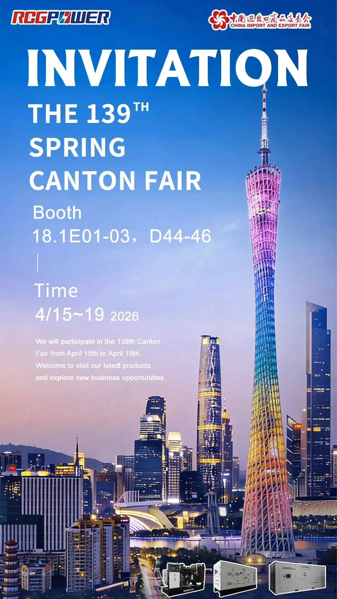 RCGPOWER Joining hands with MITSUBISHI, Leroy Somer, WERNA to participate in the 139th Canton Fair.