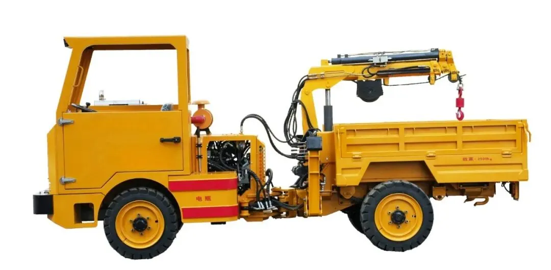FL-2.5Q运料车:一款小型化的井下运料车,其运载能力为2.5吨,车厢上配备小型吊臂,最高起吊高度3760mm。该设备体积小巧,机动性能强,可辅助完成搬运、维修等施工作业。