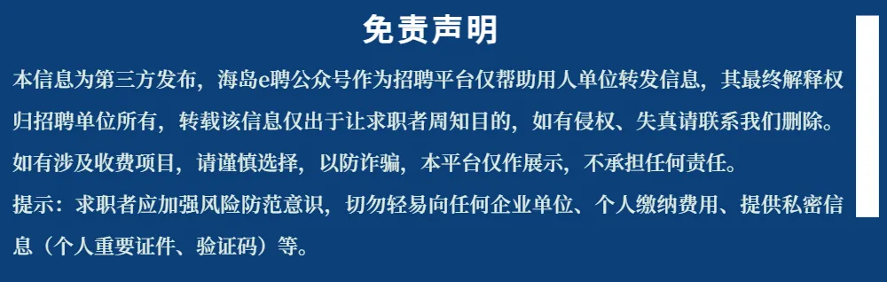 海岛e聘为招聘信息发布平台,仅帮助用人单位转发信息
