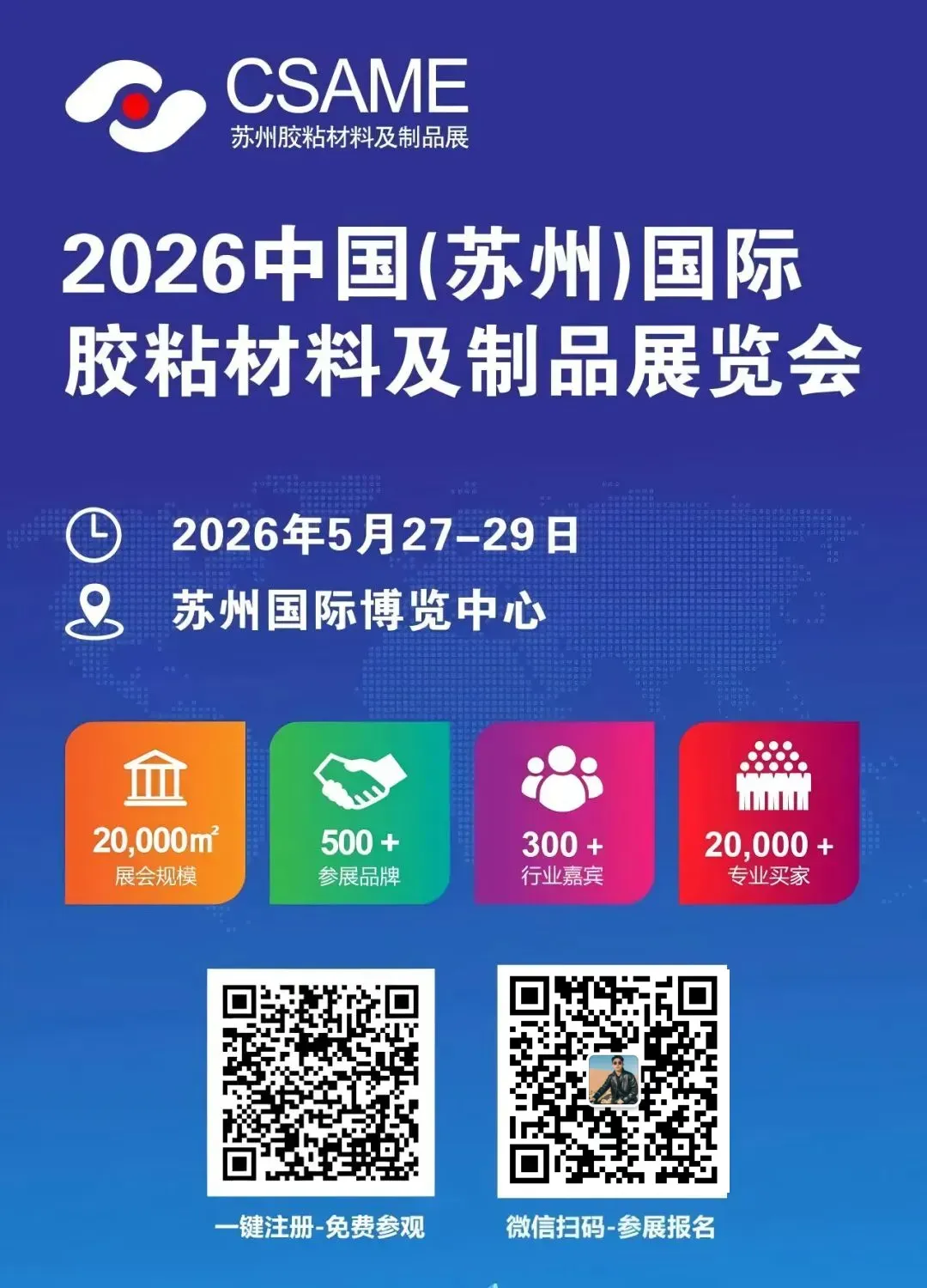 CSAME 2026的举办正值中国制造业转型升级的关键时期,胶粘新材料作为"工业味精",其性能提升直接关系到下游产品的质量突破。通过这一平台,行业将共同探索胶粘材料在绿色环保、高性能化、智能化等方面的发展路径。
