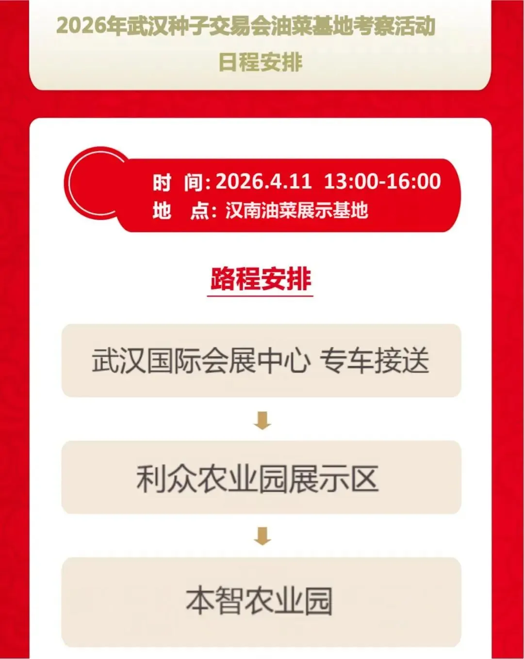 2026武汉种子交易会同期举办2026全国油料作物育种双交会,并开展油料作物院士专家论坛、油料作物企业综合展示、油料作物科技成果展示长廊、油料作物新品种信息发布、油料作物成果转让签约等会议活动。