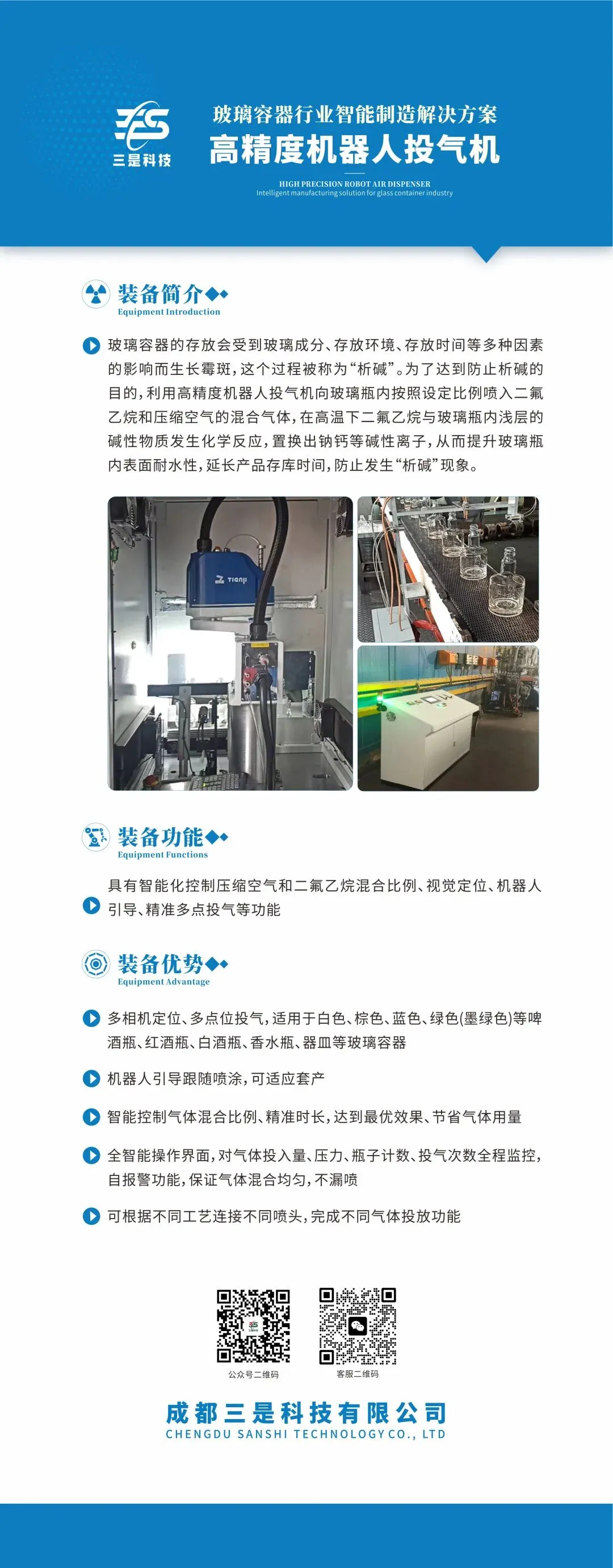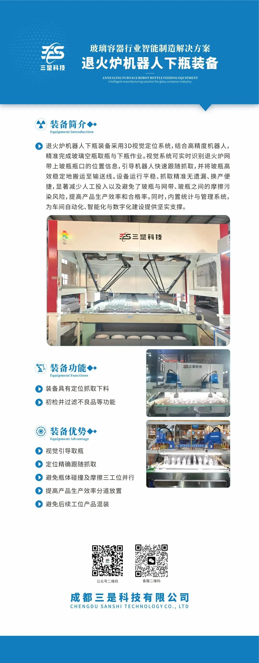 除核心柔性工位装备外,三是科技此次还展出多款针对玻璃容器行业智能设备,覆盖玻璃生产关键环节,全方位满足企业差异化智能化需求。