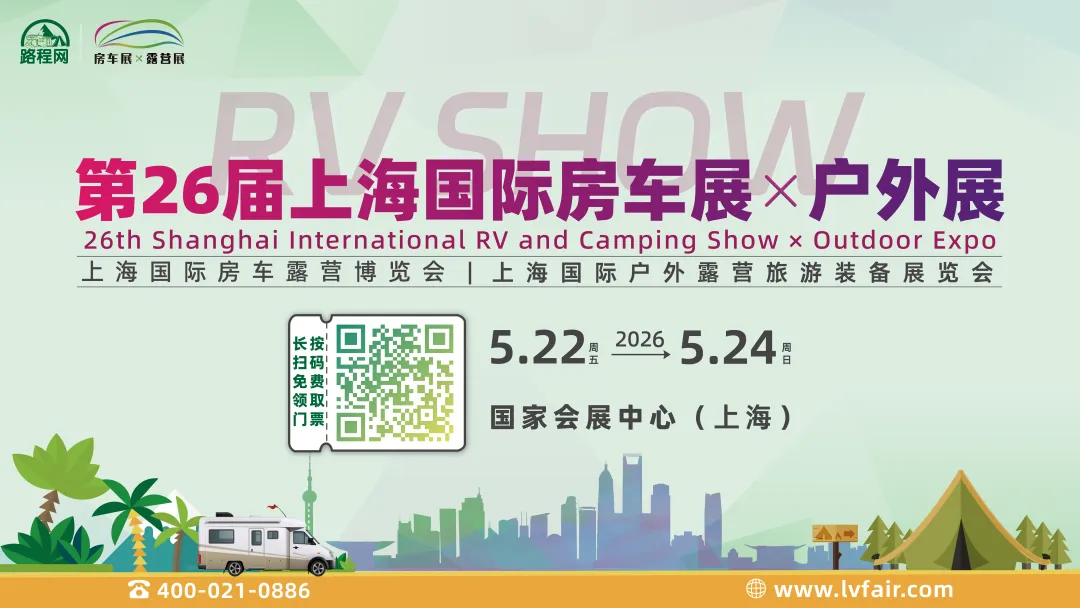 第26届上海国际房车展暨上海国际户外露营旅游装备展览会将于2026年5月22-24日在国家会展中心(上海)盛大举办。展会以“房车×户外”为主题,对中国房车露营产业生态链进行更深层次、更广维度的探索。我们诚邀诸君携手,共同开拓“房车+”的无限想象,打造一个“不一般”的房车露营行业顶级盛会。