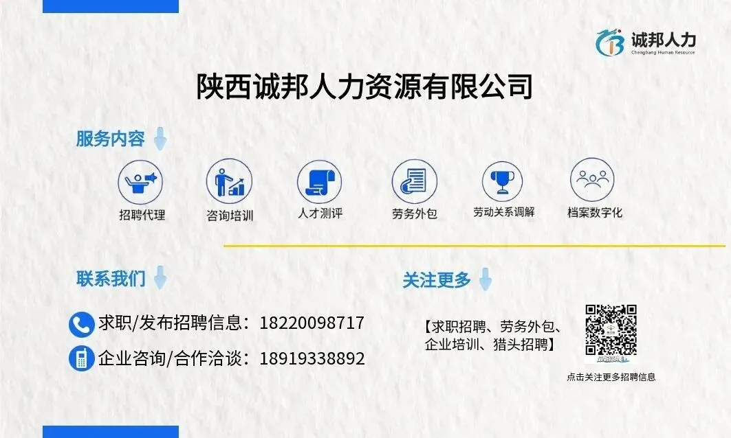 陕西诚邦人力资源有限公司成立于2015年,历经十年稳健发展,业务持续拓展升级。公司聚焦制造业全流程人力资源服务,从研发到生产为企业提供一站式专业支撑。
