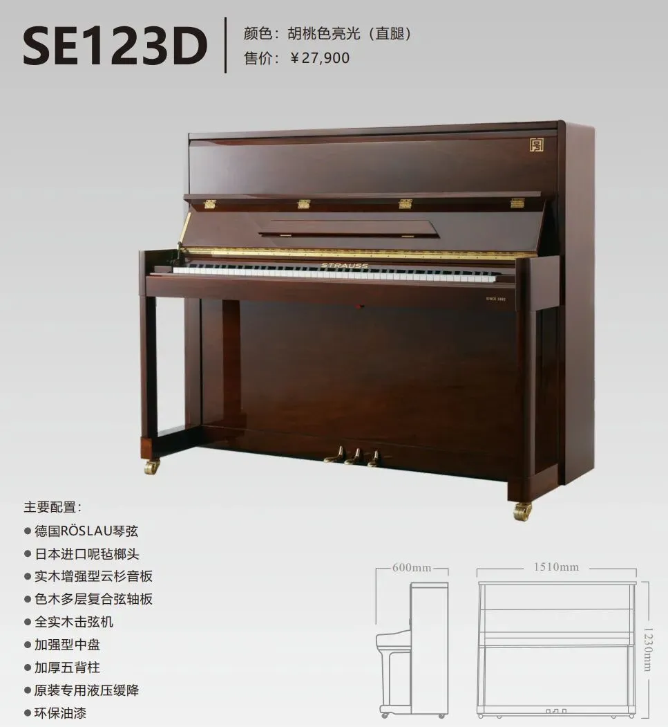 施特劳斯东方系列将传统工艺与现代设计融于一体,琴键的触感均衡一致、轻重适中,音色优美悦耳、和谐统一。当您弹奏东方系列的钢琴或者欣赏她的琴声时,您会立刻感受到什么叫做物超所值。