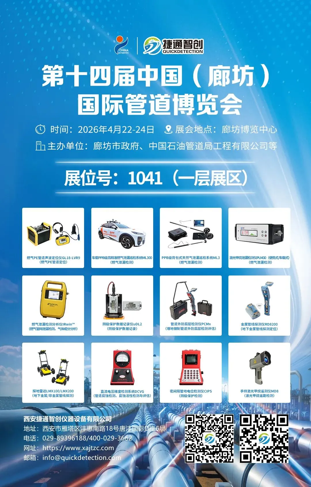 西安捷通智创公司作为一家长期从事于地下管线探测检测仪器设备的研发、生产、销售、维修及相关工程技术服务的专业化公司,是探管者品牌GL系列智能燃气PE管道定位仪的研制生产单位。除了自主研发生产一系列燃气PE管道声波定位仪和PPB级高精准燃气泄漏巡检系统(车载及背包式)及激光甲烷泄漏检测仪产品外,同时也是英国雷迪、英国DCVG公司、加拿大摩比特公司(Mobiltex)、德国英福康公司、加拿大SSI公司、千寻位置等行业知名厂家中国区域授权代理。作为埋地燃气管道完整性检测与安全运行一站式解决方案提供商,公司将会展出地下管线探测定位仪器、燃气泄漏检测分析仪器、激光甲烷泄漏检测仪器、埋地管道防腐检测仪器、管道阴极保护检测仪器、杂散电流检测仪器、测绘仪器等众多仪器。当全球的目光聚焦于油气管道建设这一潜力无限的领域时,第十四届中国(廊坊)国际管道博览会将成为行业内最耀眼的舞台,公司诚邀您4月22-24日相约于廊坊博览中心1041(一层展区)展位,共襄盛举!
