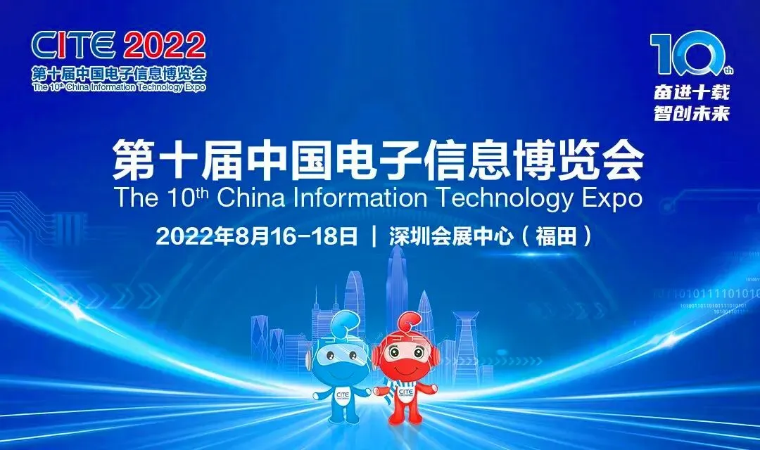 8月16日,以“奋进十载 智创未来”为主题的第十届中国电子信息博览会(CITE 2022)在深圳隆重举行。电子信息产业名企荟萃,大咖云集,CITE主题馆、新型显示及应用馆、元宇宙及虚拟现实技术专馆、智电生活馆、电子数字生活馆、大数据云计算馆、新一代信息通信产业集群馆、智能驾驶及汽车技术馆、基础电子馆九大展馆,10万平米展出面积,1400余家参展企业,20大专业展区,40余场主题活动,为业界充分展示了智能时代电子信息产业最新发展成果与趋势。近十年,是我国电子信息产业取得长足发展与飞跃进步的十年,也是中国电子信息博览会作为行业风向标展会,深耕电子信息产业的十年,成就“行业领先、亚洲第一、世界一流”。