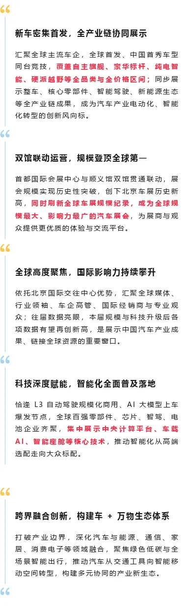 北京国际汽车展览会自1990年创办以来,历经三十余载积淀,已成为中外汽车行业交流合作的重要桥梁,见证了中国汽车产业发展历程。
