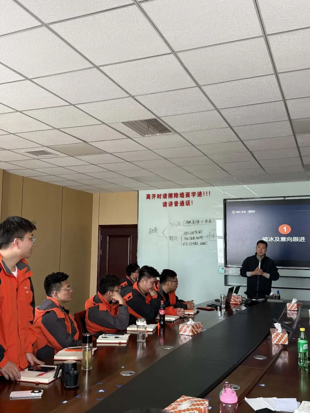 会议在紧张而热烈的氛围中拉开帷幕。招商中心总监徐凯对第一季度招商数据进行了全面复盘,用数字说话,从成果中提炼方法,从差距中明确方向。标杆分享环节,王威、葛盼正、耿来杰三位优秀代表依次登台,毫无保留地分享实战心得与破局经验,用真实案例激励每一位战友——“标杆在前,唯有追赶超越”。