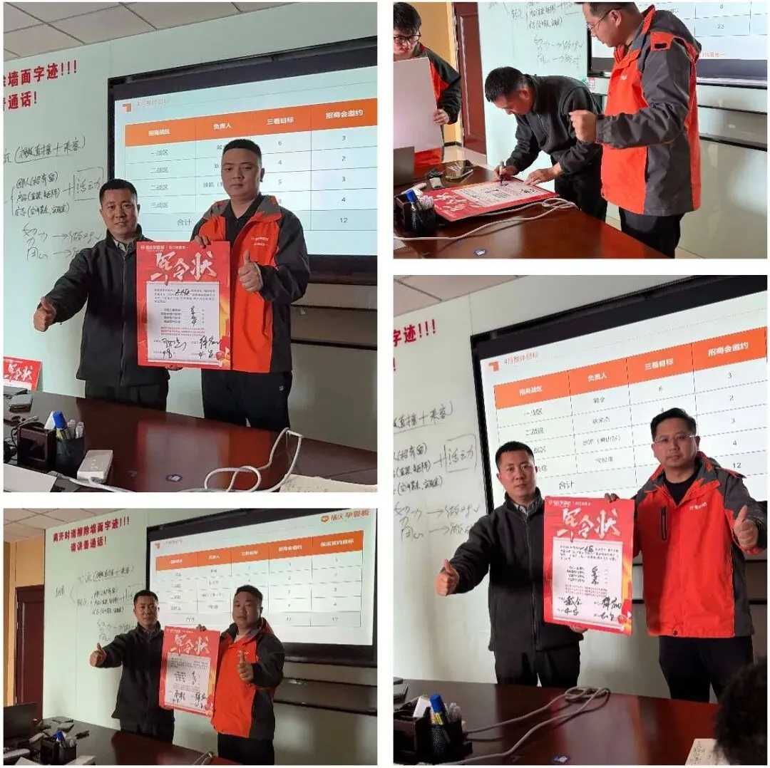 招商中心总监徐凯现场兑现3月招商奖励,以真金白银的奖励激发团队战斗力,随后正式发布4月招商目标及全新激励政策。军令如山,使命必达!团队成员依次登台,在全体同仁的见证下,郑重签下军令状。