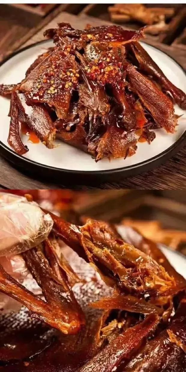 撕下一点美味筋道的鸭肉,放进嘴里只需稍微咀嚼