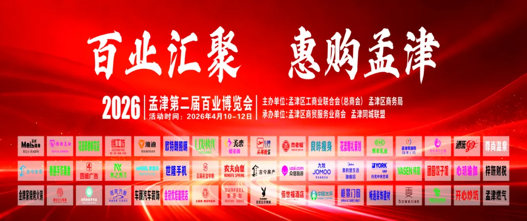 为激活商业活力,惠及民生福祉,由孟津区商务局和孟津区工商联携手主办,孟津区商贸服务业商会和同城联盟共同承办的“百业汇聚 惠购孟津”第二届孟津百业博览会活动,将于2026年4月10日至12日在南区休闲文化广场举办。