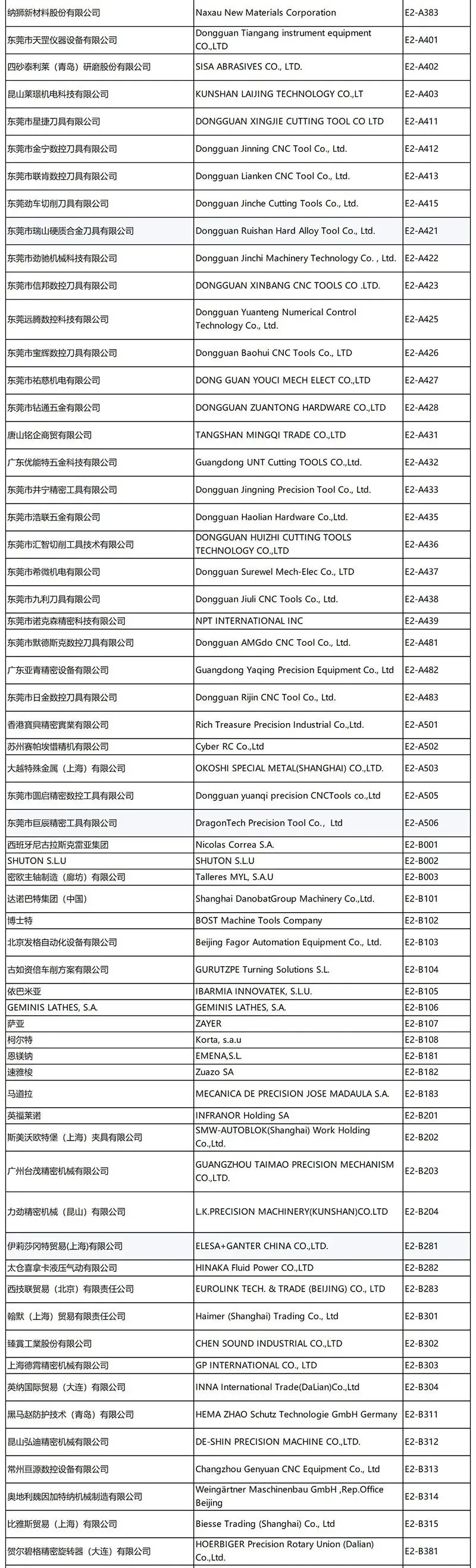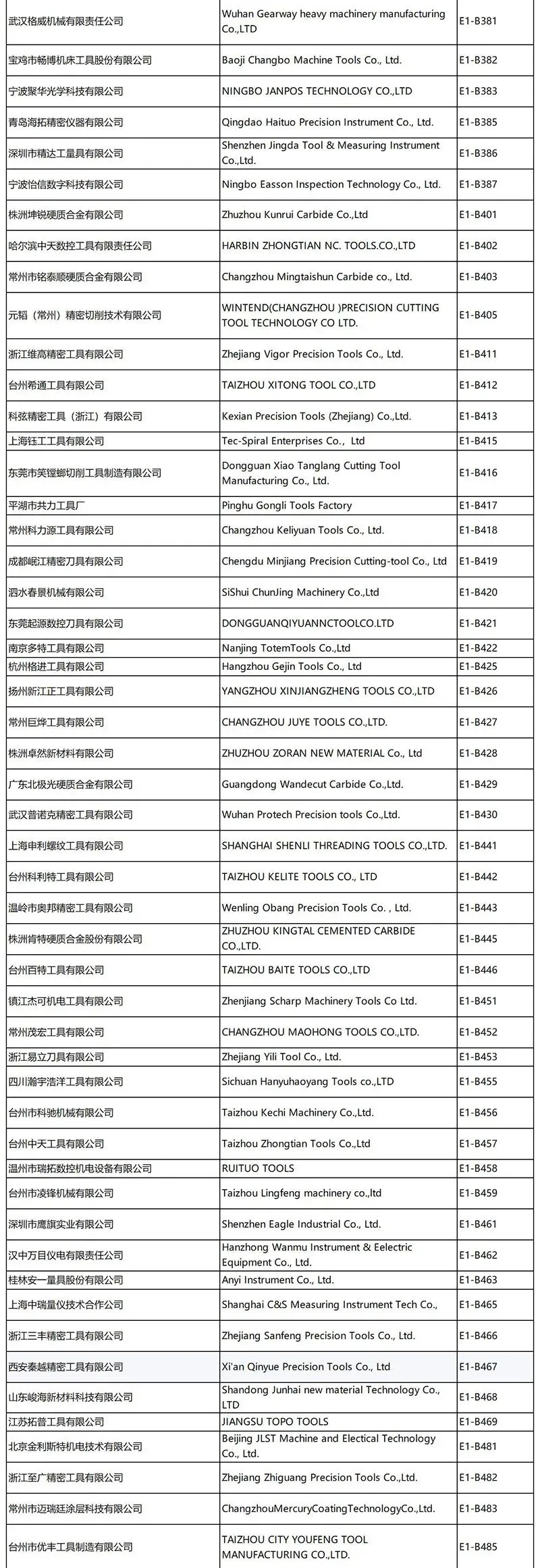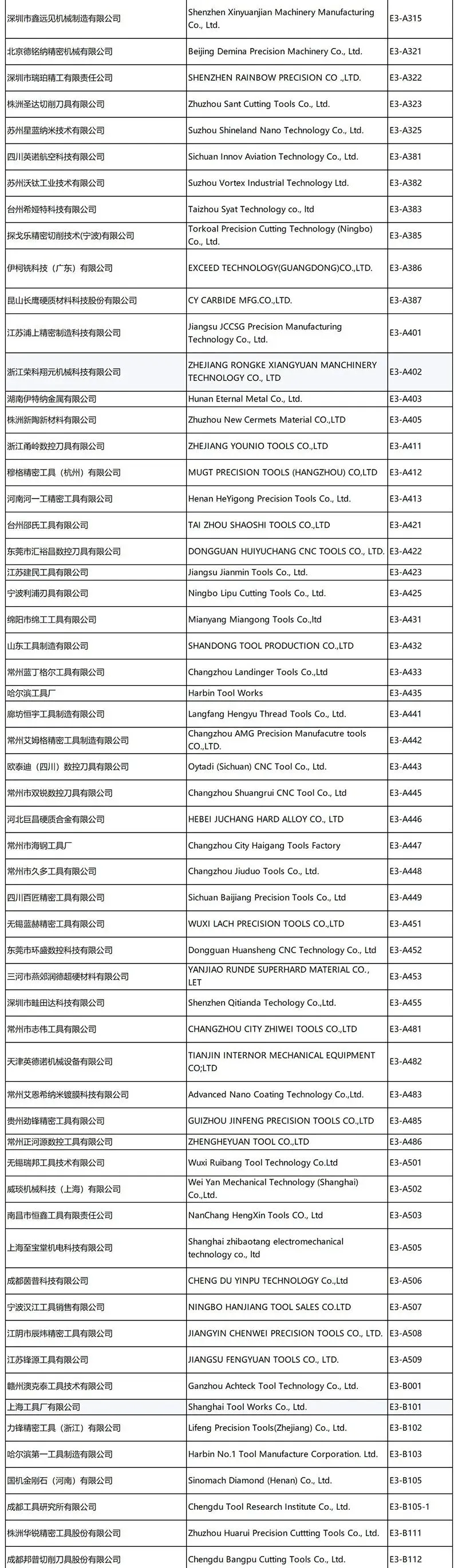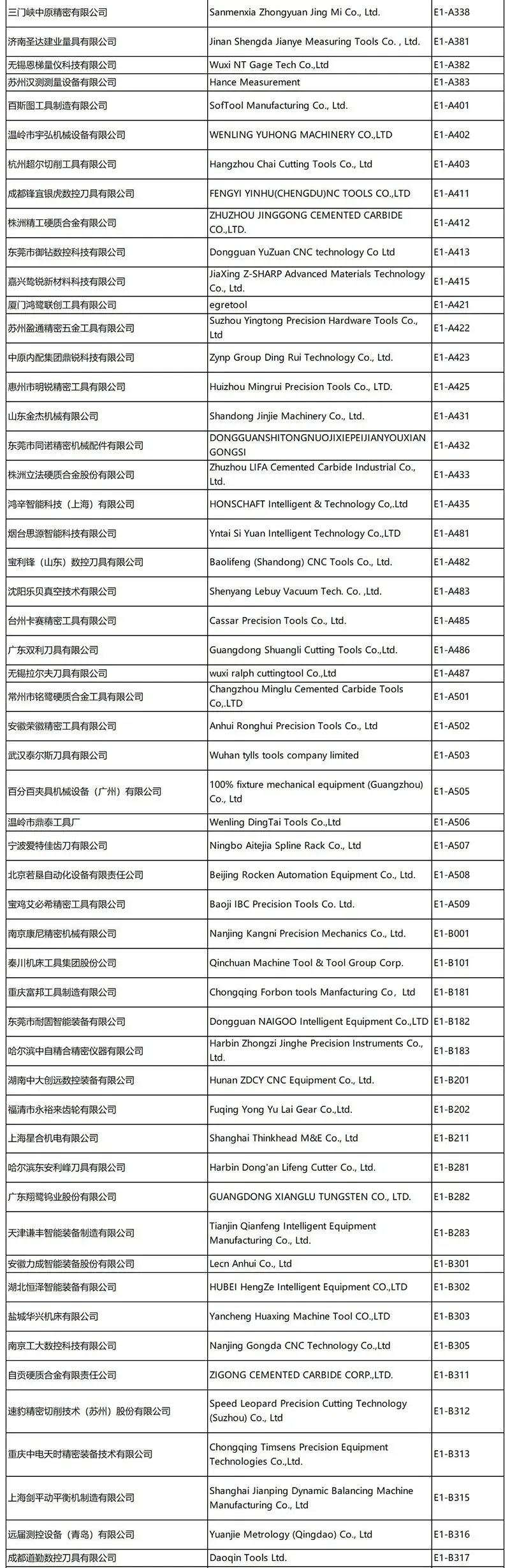 (名单来自CCMT展会官网,以上排名不分先后,观众可以通过展会官网(www.ccmtshow.com)或协会微信公众号(进入官网链接)进行浏览)