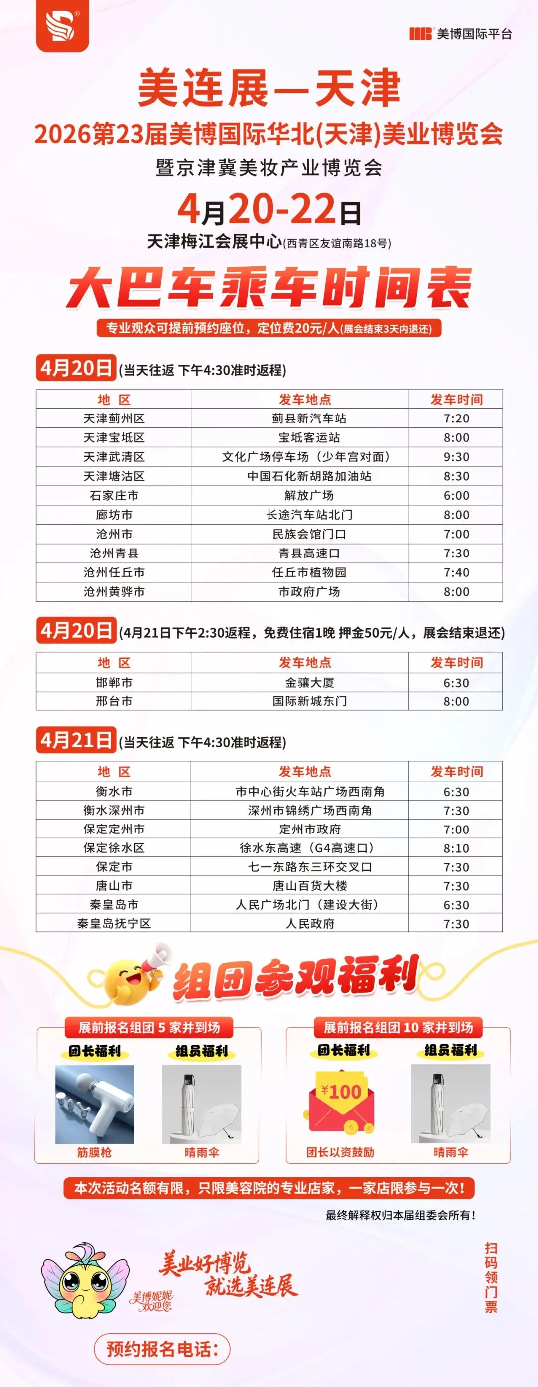 1.2026美博国际(天津)美业博览会大巴车为免费服务。