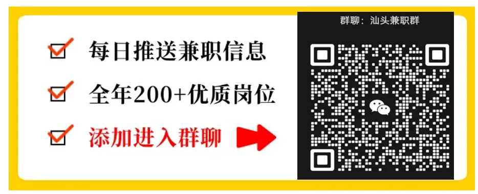 130包餐水,超过八小时算加班加班一小时15(活动结束核对完结算汕头应聘兼职+来源微信公众号“汕头大学生Studio”