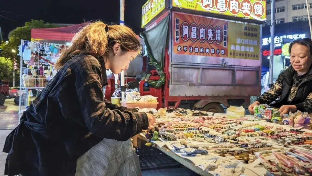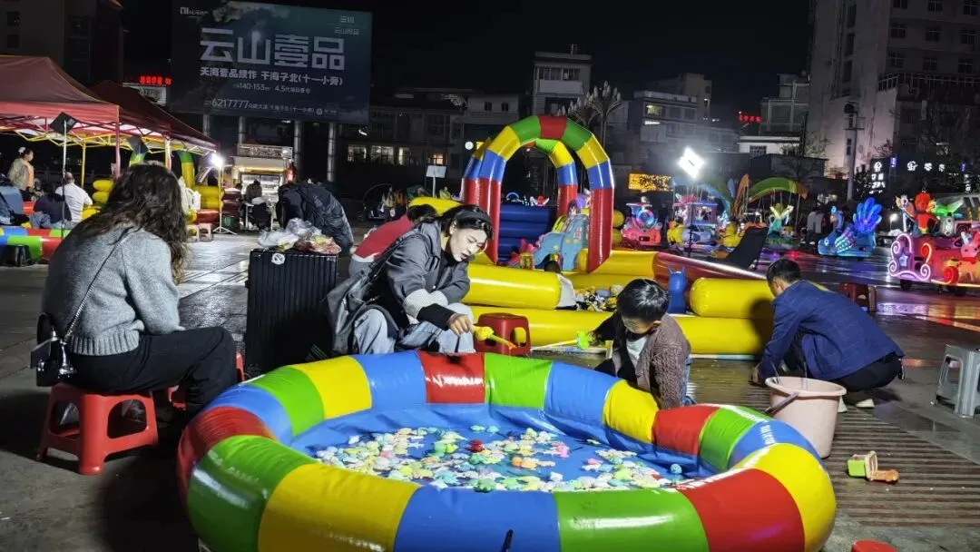走进会展中心,特色小吃、文创产品、儿童游乐等各类业态一应俱全。晚风拂过,空气中弥漫着烤洋芋、炸串、冰粉的诱人香气,摊主们忙碌地招呼着顾客,市民们或驻足挑选商品,或围坐品尝美食,或悠闲散步闲聊、暖意融融,彻底唤醒了威宁的夜晚。