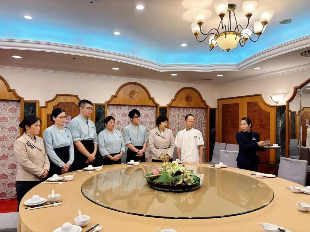 餐厅是宾客感受岭南饮食文化的重要场所,服务人员的每一处细节都代表着流花宾馆的待客温度。广交会前夕,餐厅团队开展服务礼仪培训,一杯热茶、一句问候、一个微笑,都是对远方来客最真诚的欢迎。