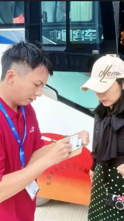 大巴旁的暖心引导