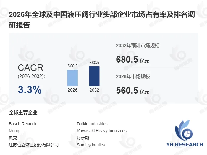 以下内容来自恒州诚思YHResearch出版的《2026年全球及中国液压阀行业头部企业市场占有率及排名调研报告》,同时提供英文,日文,韩文等不同语种版本报告。