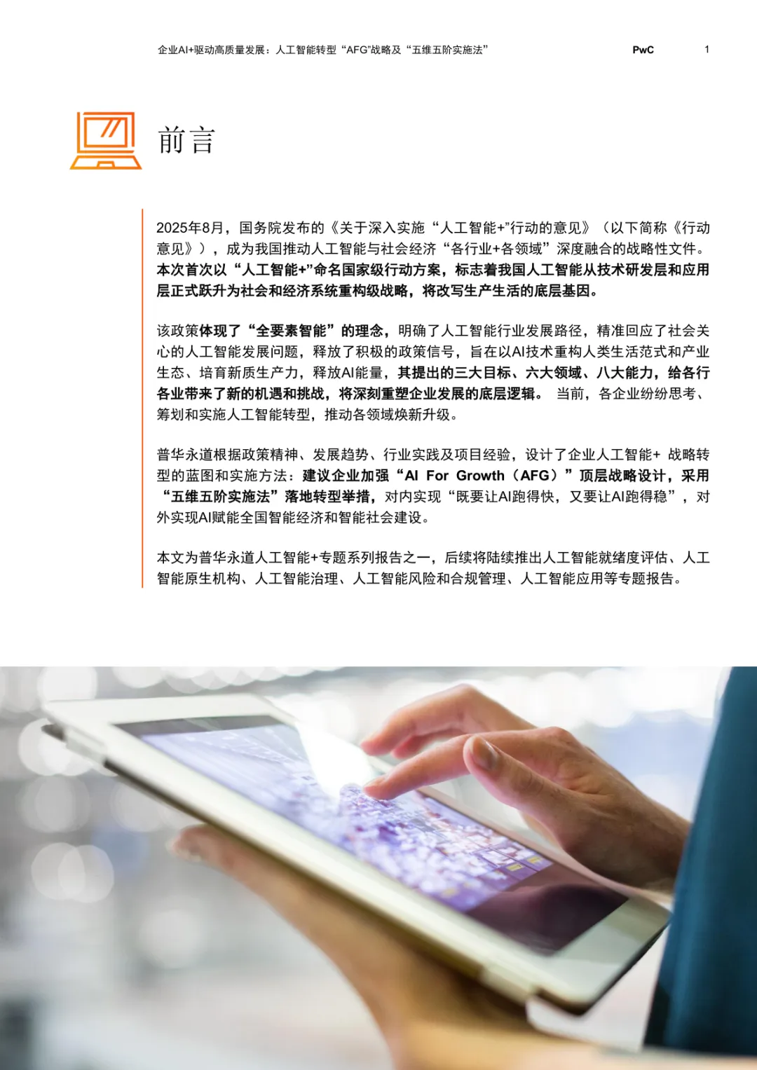 洞察 | 人工智能行业企业AI+驱动高质量发展:人工智能转型“AFG”战略及“五维五阶实施法”
