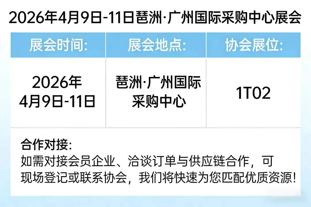 ?展会地点:琶洲·广州国际采购中心?协会展位:1T02