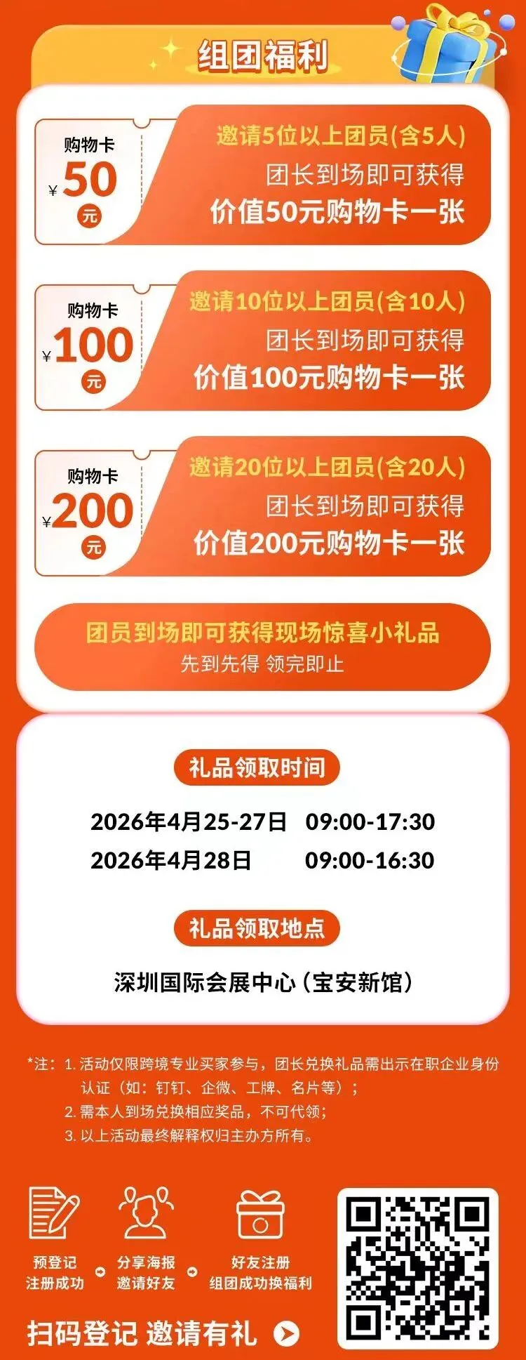 邀请好友一同逛展,团长最高可获200元购物卡,团员到场即领惊喜好礼!