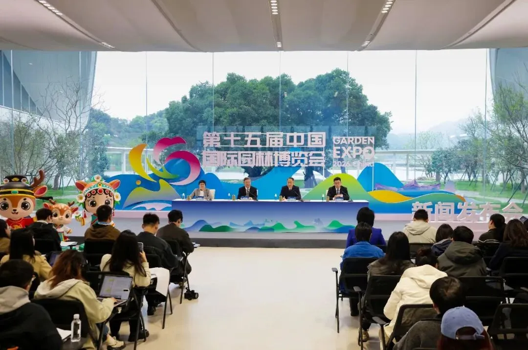 4月8日下午,浙江省人民政府新闻办公室在温州园博园中国馆召开新闻发布会,宣布第十五届中国国际园林博览会将于4月15日在温州正式开幕。住房城乡建设部城建司司长胡子健、浙江省建设厅厅长李跃旗、温州市市长张文杰出席并回答记者提问。省委宣传部部务委员、一级巡视员,省政府新闻办新闻发言人骆莉莉主持。