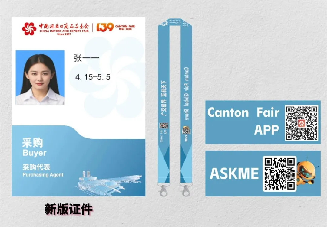 ◉证件全新升级!第139届广交会证件版面全新焕新升级!挂绳贴心加宽,佩戴更舒适;同时加印广交会APP及ASKME逛展智能体二维码,一键解锁便捷逛展新体验!