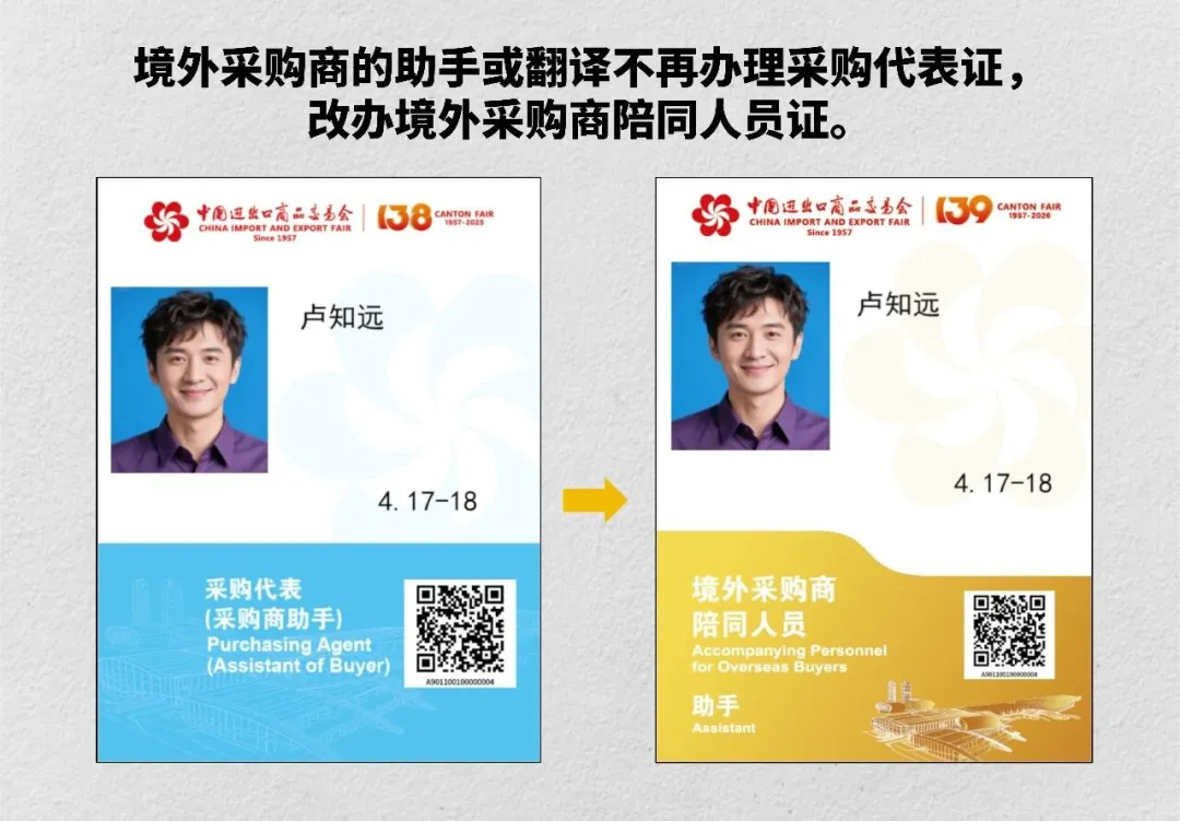 ◉证种调整!境外采购商的随行助手和翻译人员不再办理采购代表证,统一调整为境外采购商陪同人员证。详细办证流程敬请关注大会后续通知。
