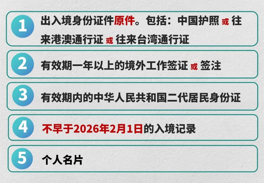 ◉持有签证类型必须是工作签证;