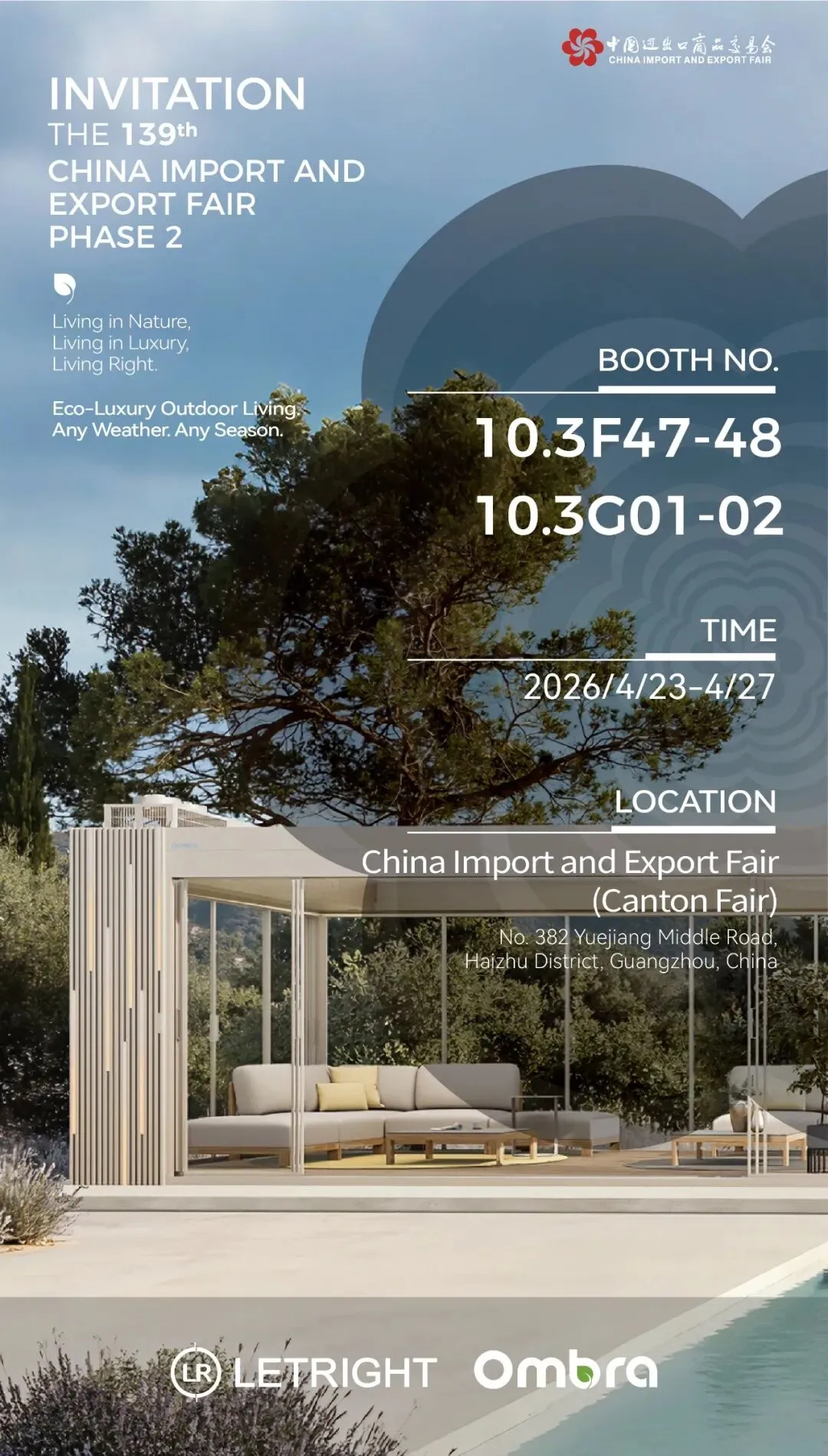 我们期待与您相聚广州,并携手Ombra欧铂纳智能观景棚,助您开启极致奢华的户外生活体验。