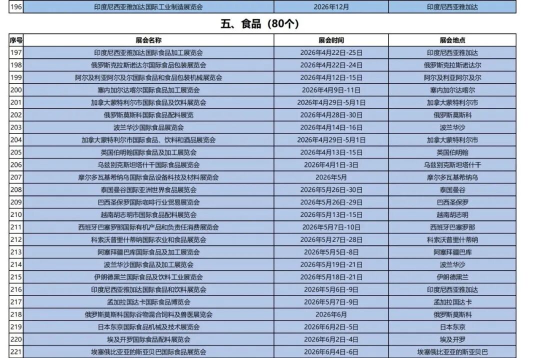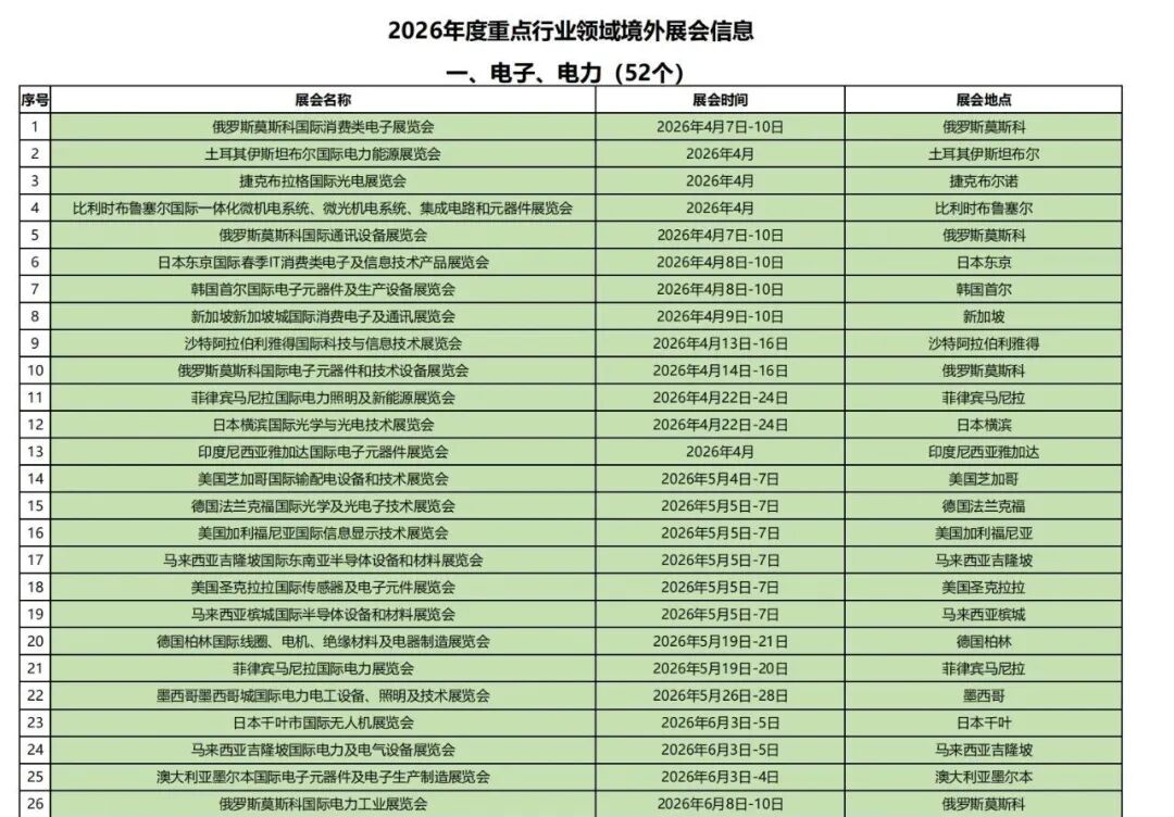 近日,郴州市商务局会同相关单位收集了6大重点行业领域335个境外展会信息,进一步发挥好展会拓市场、增订单的积极作用,助力打造“开放发展排头兵”。