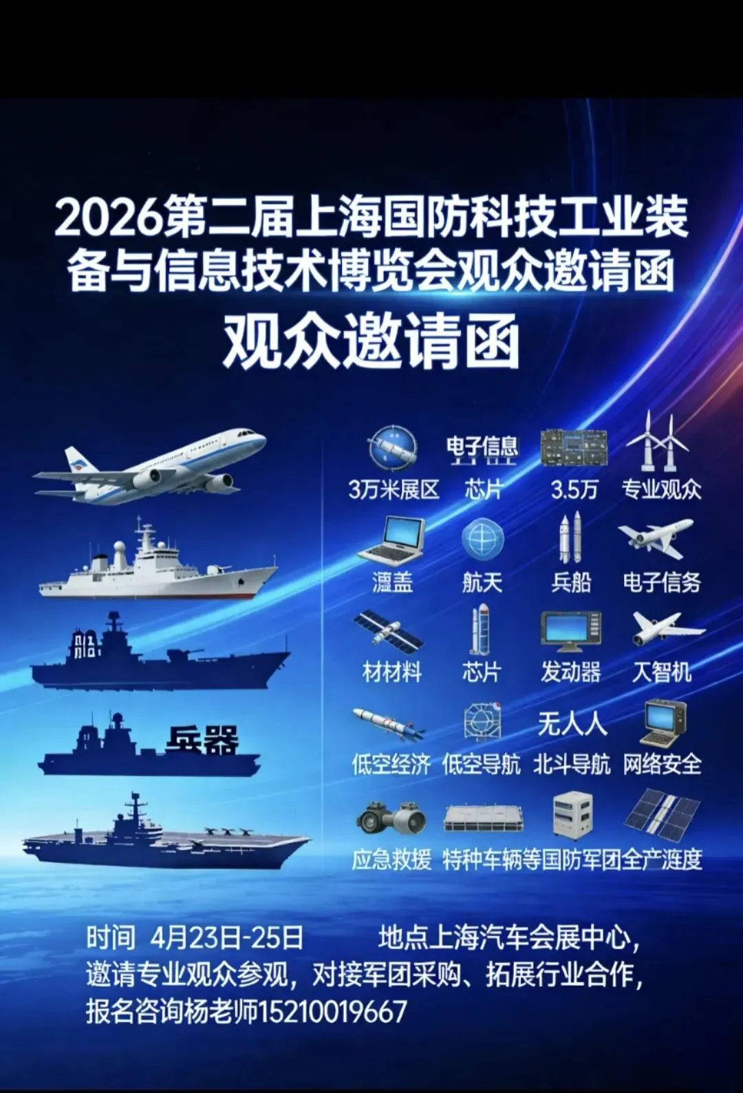 2026第二届上海国防科技工业装备与信息技术博览会,将于4月23-25日在上海汽车会展中心举办。展出面积30000+平方米,专业观众35000+人次,军工科研6000+人次。立足华东,辐射全球国防军工市场,聚焦运载火箭、发动机、特种电子元器件、半导体产业、精密陶瓷、微波射频、电磁兼容、武器装备智能化、雷达系统、特种计算机、激光及光电子、军工自动化、工业机器人、动力传动、智能制造、军民两用新材料及制品、军工复合材料、军工装备配套产品、精密加工、增材制造和3D打印、军工装备试验、惯性导航、传感器、仪器仪表、国产化信创产业、网络安全、军事通信系统、通信保密、指挥控制、数据中心、电池电源、后勤装备、应急救援装备、特种车辆、方舱、光电系统、无人机整机、反无人机装备、特种机器人、训练器材、野营装具、卫勤医疗、油料装备、炊事装备、防弹装备、单兵装备、物流装备、综合保障装备等前沿技术装备。