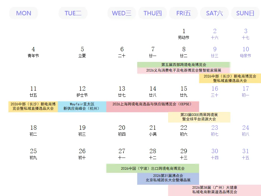 5月正是电商布局新渠道、对接新资源、抢占新商机的黄金期!跨境出海、私域变现、直播选品、供应链对接……每一个赛道都藏着突破增长的可能,错过再等一年!