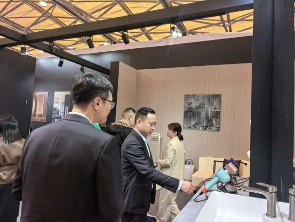 此外,团队积极向现场展商及客商推介嘉定区及华亭镇相关招商政策,发放宣传资料与名片,建立初步对接意向,拓展潜在项目资源。展会现场还汇聚美爵信达、九牧、惠达、TCL、舒达等头部品牌,展现了行业智能化、品质化升级趋势。