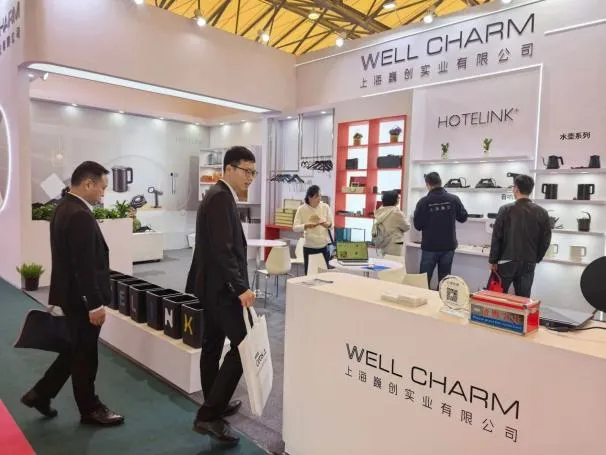 展会期间,团队重点走访了已入驻华亭的上海巍创实业有限公司。该公司展出的吹风机、电熨斗、电热水壶、衣架等酒店用品凭借实用设计与稳定品质,吸引众多客商关注。公司负责人周总介绍,公司已与锦江、华住会等一线连锁酒店建立长期合作,今年销售额预计同比增长超50%,发展势头良好。走访过程中,团队现场回应企业关切的政策问题,进一步稳定企业预期,增强发展信心。