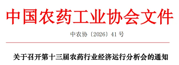 为全面回顾和总结2025年我国农药行业经济运行全貌,客观分析行业在运行过程中的成效与问题,科学研判2026年行业发展态势,精准把握“十五五”期间农药产业发展脉络,探寻产业链韧性提升、合规转型与高质量发展的可行路径,凝聚行业共识、破解发展难题,助力企业在产业重塑中站稳脚跟,中国农药工业协会定于2026年5月19-21日在山东省泰安市召开第十三届农药行业经济运行分析会。