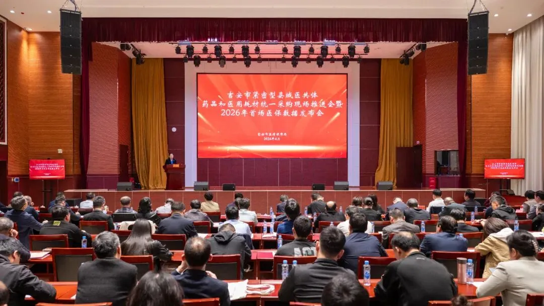 4月7日,吉安市紧密型县域医共体药品和医用耗材统一采购现场推进会暨2026年首场医保数据发布会在青原区成功召开。市政府副市长周密出席会议并讲话,省医保局医药价格和招标采购处处长蒋光明出席,市医保局党组书记、局长曹蕾介绍2025年全市医保工作成效及2026年重点工作安排。