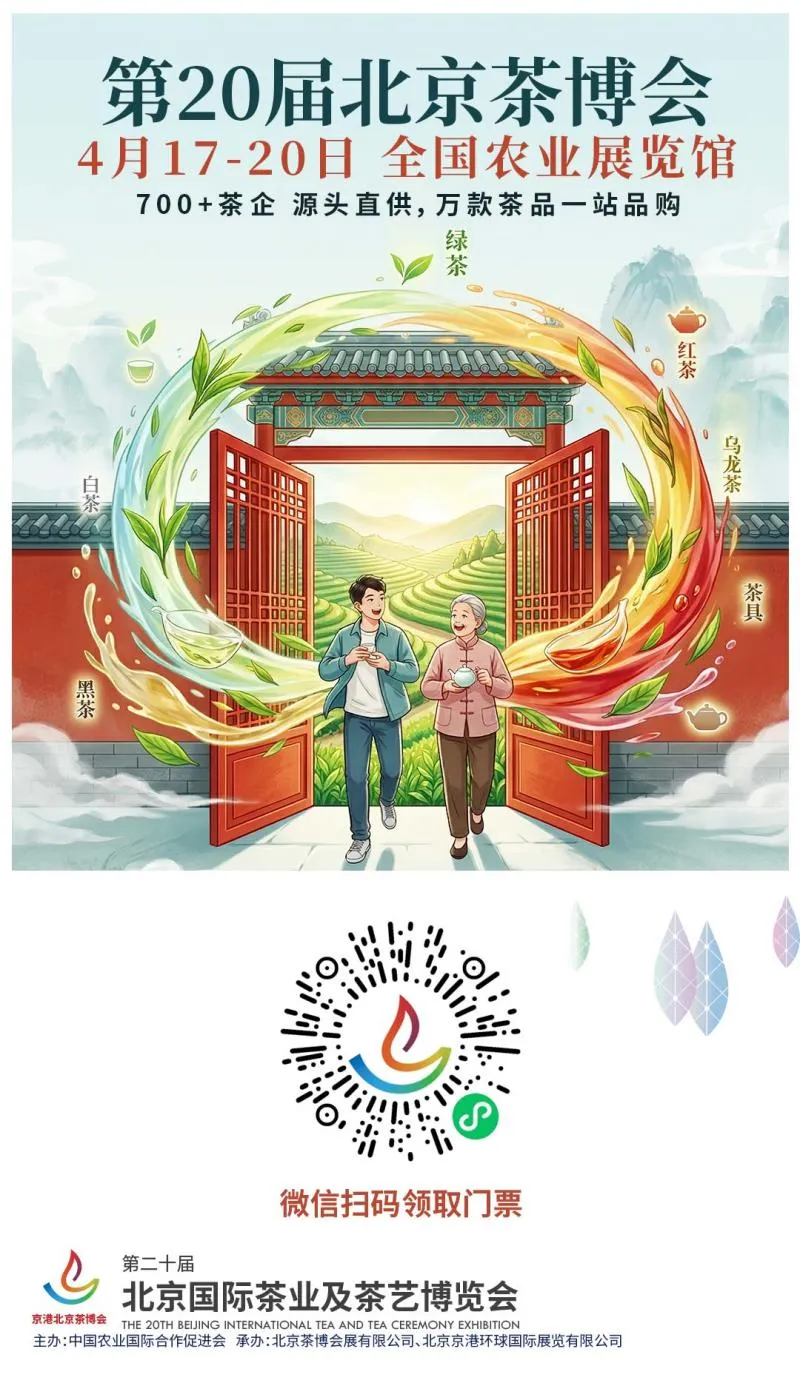 本届北京茶博会由中国农业国际合作促进会主办,北京京港环球国际展览有限公司承办。目前免费门票领取通道已正式开启,扫描下方二维码即可预约领票,共赴这场春日茶约。