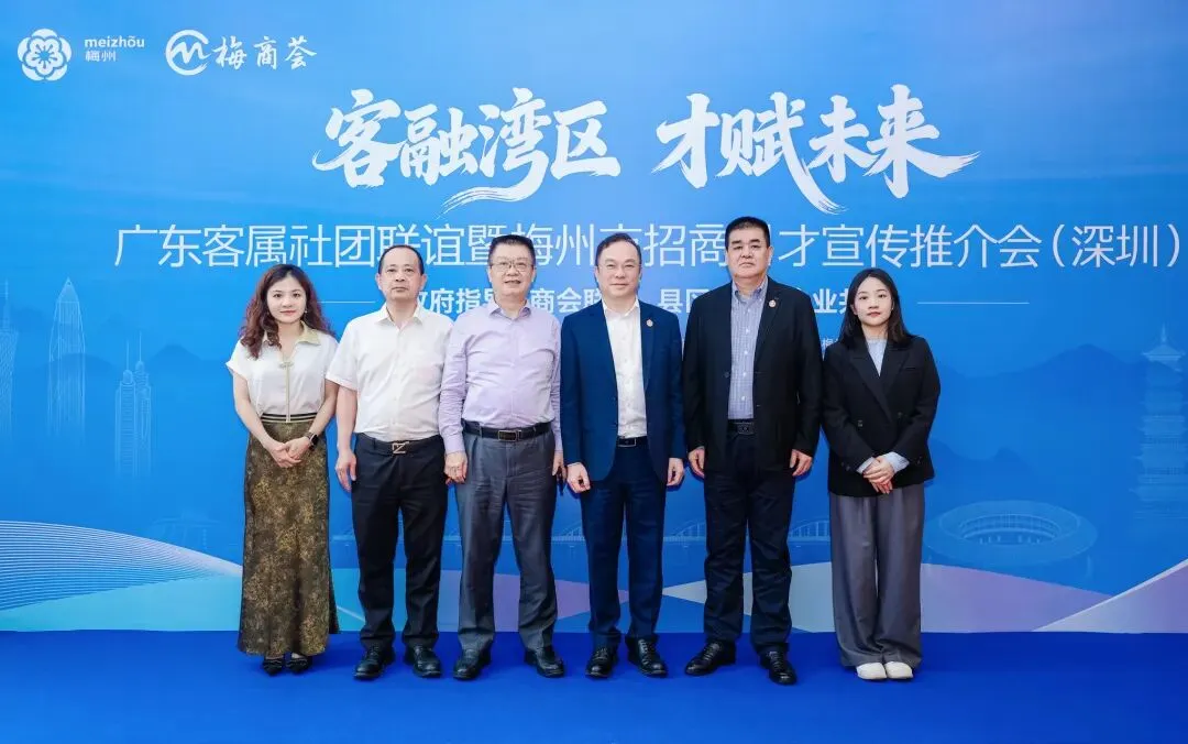 为深入贯彻广东省高质量发展大会精神,抢抓苏区融湾先行区建设重大机遇,凝聚客属力量,助力梅州招商引才与产业发展,2026年“客融湾区·才赋未来”——广东客属社团联谊暨梅州市招商引才宣传推介会(梅州招商引才推介会)于4月8日下午在深圳五洲宾馆隆重举行。