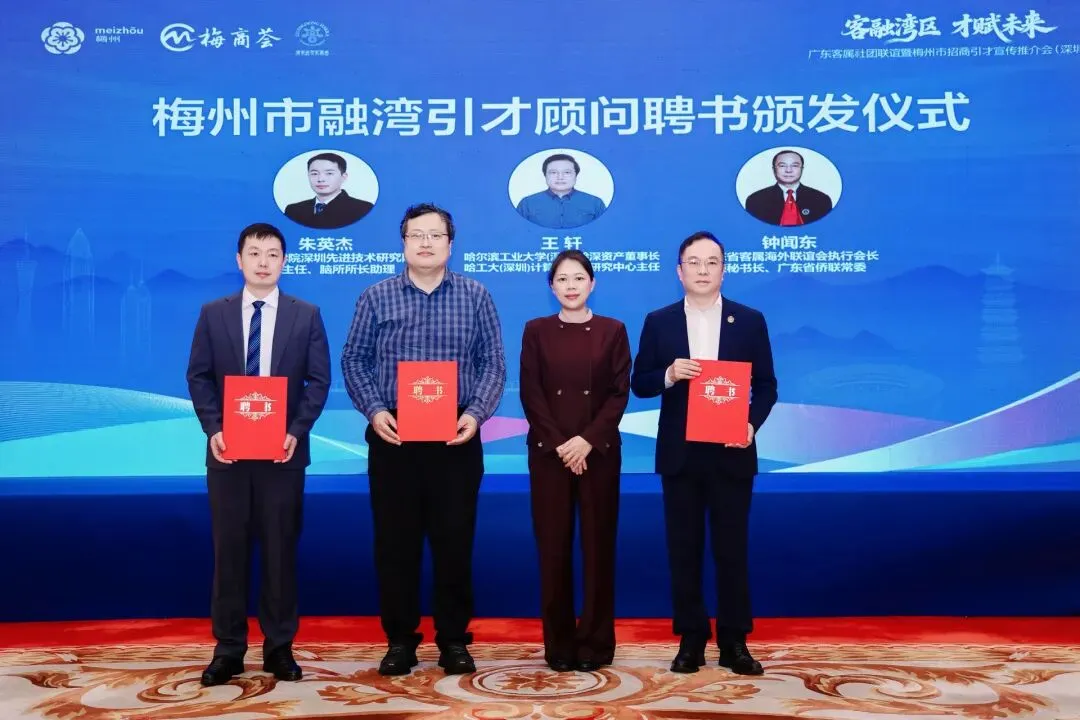作为梅州招商引才大会活动的重要环节,“梅州市融湾引才顾问”聘书颁发仪式在活动现场隆重举行。“梅州市融湾引才顾问” 是梅州市委、市政府对接大湾区、汇聚全球客属资源、推动苏区振兴的核心桥梁与智囊力量的重大举措,是梅州高质量发展具有不可替代的战略价值。此次受聘担任“梅州市融湾引才顾问”的都是有影响力、有资源、有乡情、有能力的关键人物。他们中间既有海内外知名客属乡贤、大湾区商界领军人物,又有客属社团核心负责人,都是长期活跃在客家文化传承及产业领域的社会精英,他们的加持将有力的推动梅州的产业、人才深入发展。