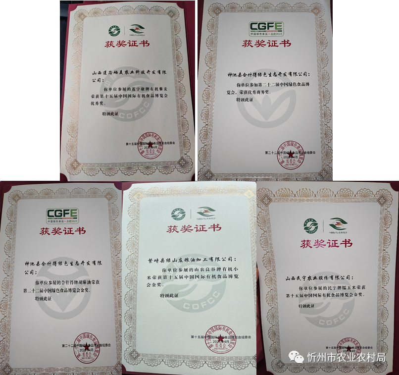 本届博览会以“展示成果、促进产销、振兴乡村”为宗旨,推行绿色生产、发展优质产品、服务公众健康,展览总面积共30000多平方米,1300余个国际标准展位。其中,中国绿色食品博览会展览面积20000平方米左右,共设置900余个国际标准展位,来自全国35个展团的2000多家企业的7000余个绿色食品、农产品地理标志、绿色食品生产资料、地方特色优质农产品及加工食品齐整亮相。有机食品博览会展览面积近10000平方米,来自部分省(自治区、直辖市)的25个展团参展和部分品牌企业单独参展,合计参展企业467家,展出产品1400余个。博览会规模大、产品多、人气旺、效果好,展示了以绿色食品为代表的绿色优质农产品最新发展成果,全方位提升了我市绿色有机食品品牌知晓度和美誉度,为绿色优质农产品生产、加工、物流、消费搭建了公共交流平台。我市山西民宇农业股份有限公司、繁峙县绿山庄粮油加工有限公司、神池县合什得绿色生态开发有限公司、神池县福满圆食品有限公司、山西康宇田源农业股份有限公司、山西莲芯硒美农业科技开发有限公司、河曲县万家福商贸有限公司、五台山天域农业开发有限公司共8家特色优质绿色食品、有机农产品企业代表我市参展。其中,神池县合什得绿色生态开发有限公司参展的“合什得牌胡麻油”荣获本届中国绿色食品博览会金奖和优秀商务奖,山西民宇农业股份有限公司参展的“民宇牌糯玉米”和繁峙县绿山庄粮油加工有限公司参展的“山农良谷牌有机小米”荣获本届中国国际有机食品博览会金奖;山西莲芯硒美农业科技开发有限公司参展的“莲宇康有机藜麦”荣获本届中国国际有机食品博览优秀奖。