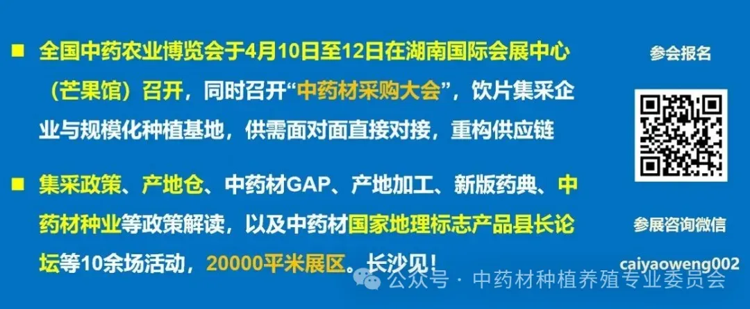 来源: 中药农业博览会 免责声明: 1.根据《中华人民共和国广告法》和《互联网药品信息服务管理办法》相关规定,本平台内容不属于药品广告范畴。所涉药品信息仅作客观陈述,不具备商业推广属性。 2.本平台转载仅为传播行业信息,不做商业用途与投资建议。我们致力于保护作者版权,部分文字/图片来自互联网,无法核实真实出处,若转载不当,请后台留言联系编辑,本平台将予以删除处理。感谢原作者的辛劳付出。文中插入广告与本公众号无关。
