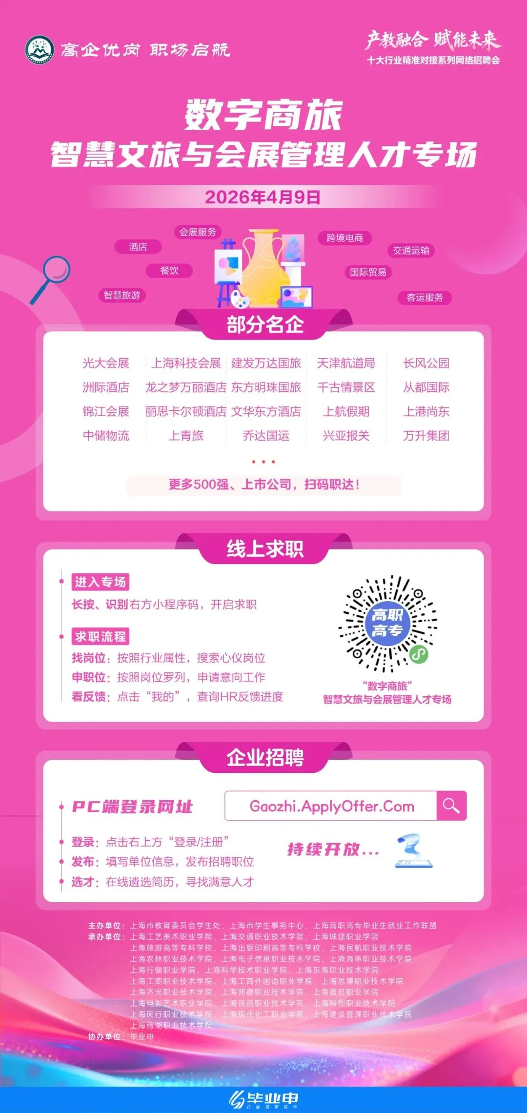 为深入贯彻落实国家关于深化现代职业教育体系建设及促进高校毕业生就业创业的决策部署,积极响应上海市职业教育高质量发展要求,有效推动高职高专毕业生更充分、更高质量就业,现决定举办专场网络招聘活动。