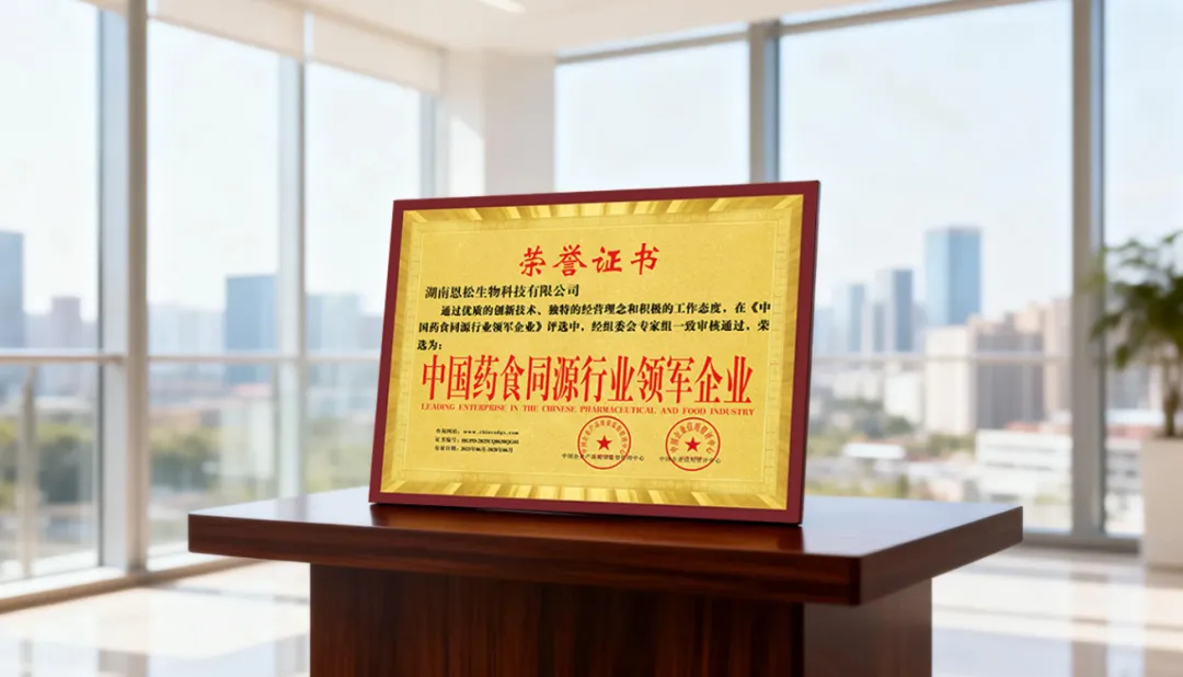 湖南恩松生物科技有限公司(以下简称“恩松生物”)凭借扎实的技术积淀、完整的产业链布局及显著的行业贡献,成功跻身“中国药食同源行业领军企业” 方阵,成为推动我国药食同源产业标准化、现代化发展的重要力量,彰显了企业在行业内的综合竞争力与影响力。