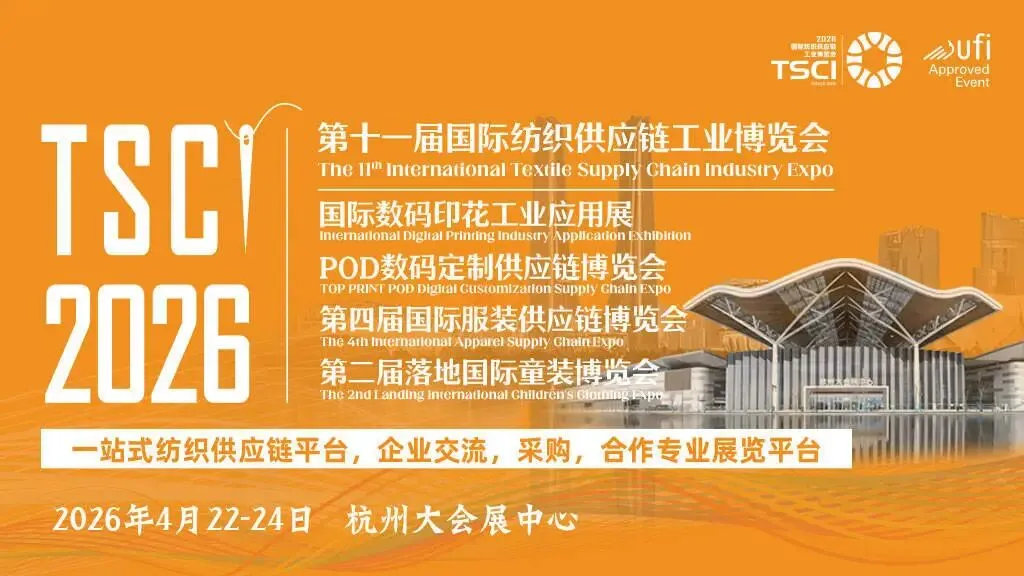 TSCI2026(第十一届)国际纺织供应链工业博览会以”构建纺织闭合生态圈,共赴智能纺织新世界"为主题,整合五大产业资源,链接纺织供应链上下游,将于2026年4月22-24日在杭州大会展中心盛大开展。