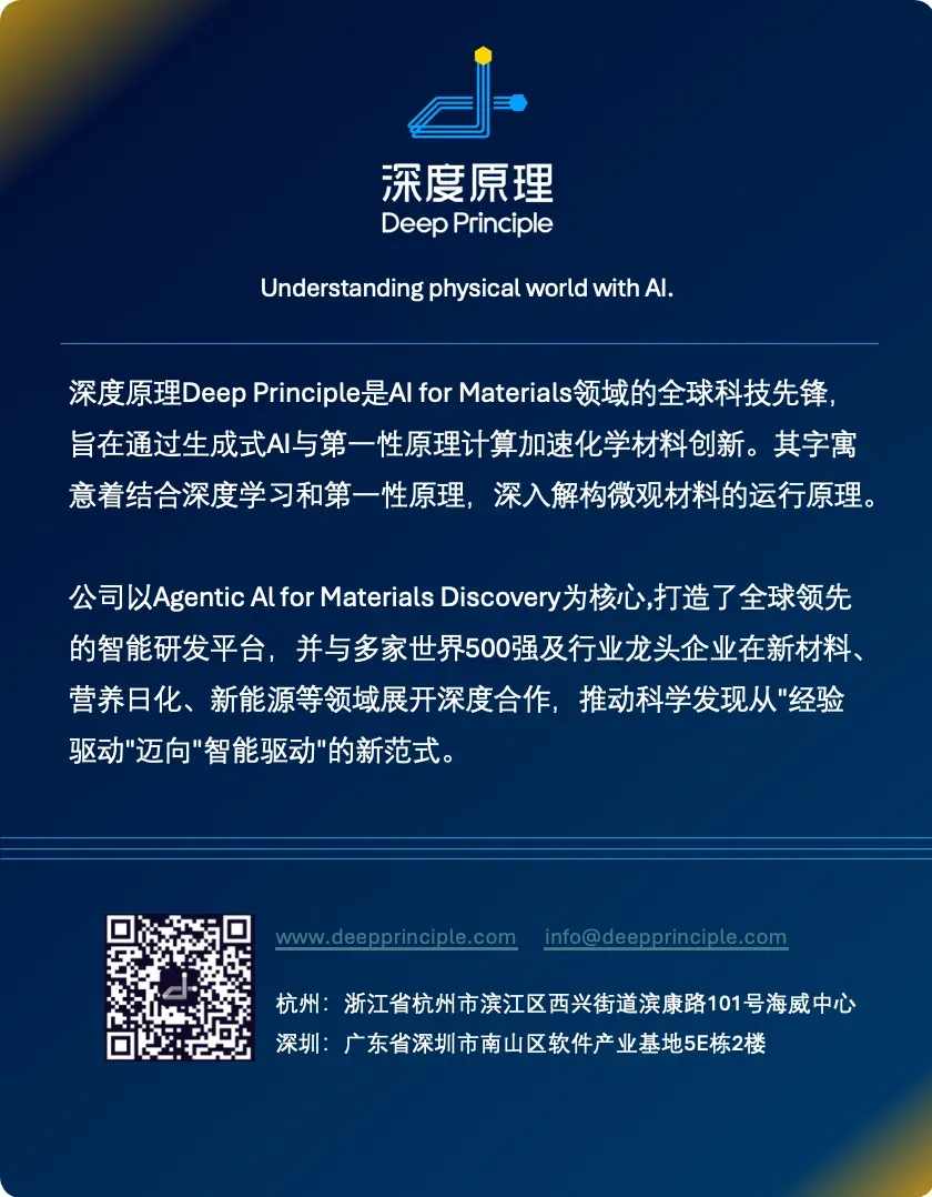 我们诚挚地邀请您莅临「深度原理 Deep Principle」展台,全方位了解Agent Mira的技术理念与应用场景,见证AI如何重塑化学材料研发的无限可能。