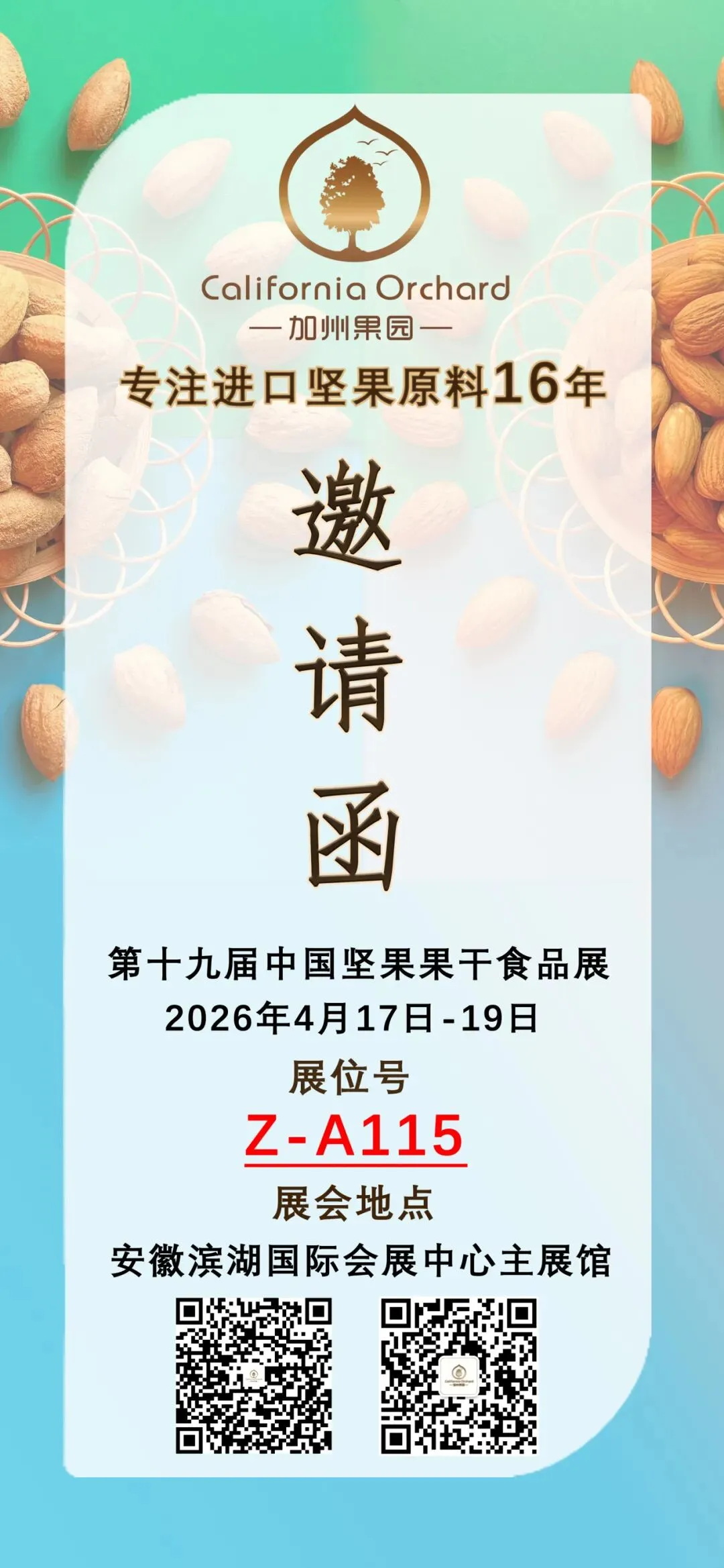 作为深耕坚果进口与销售领域的企业,我们始终怀揣对品质的执着,为每一位客户甄选优质坚果,传递温暖与安心。加州果园诚挚邀请各位行业同仁、新老客户莅临展位,共品臻味、共探商机、共话发展!
