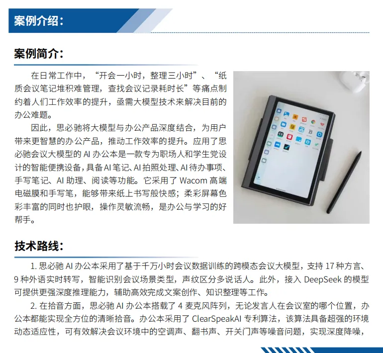 思必驰AI办公本凭借在人工智能与办公场景深度融合的创新实践,成功入选《人工智能发展与合作典型应用案例集》。