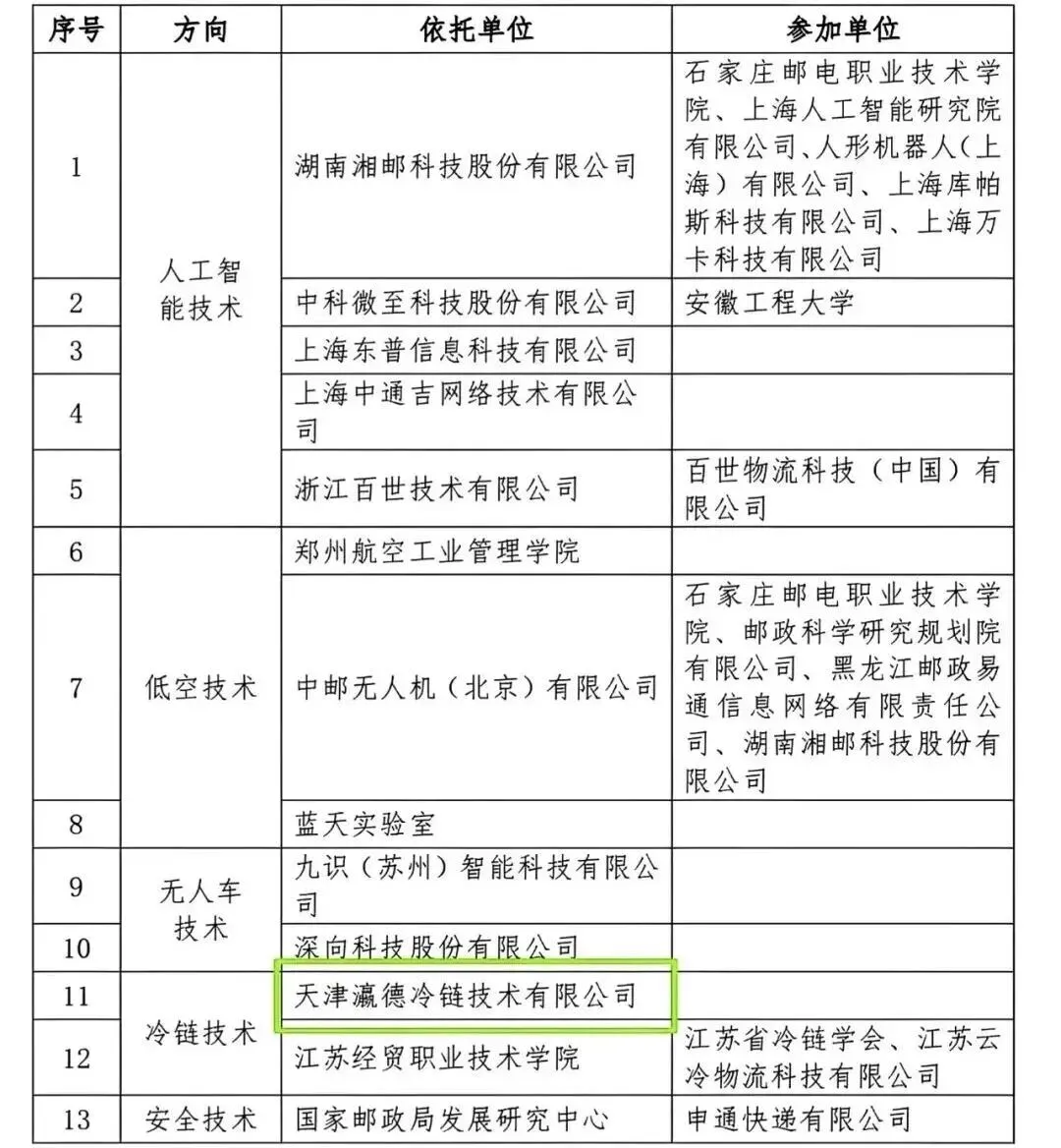 瀛德冷链获批国家邮政局技术研发中心。